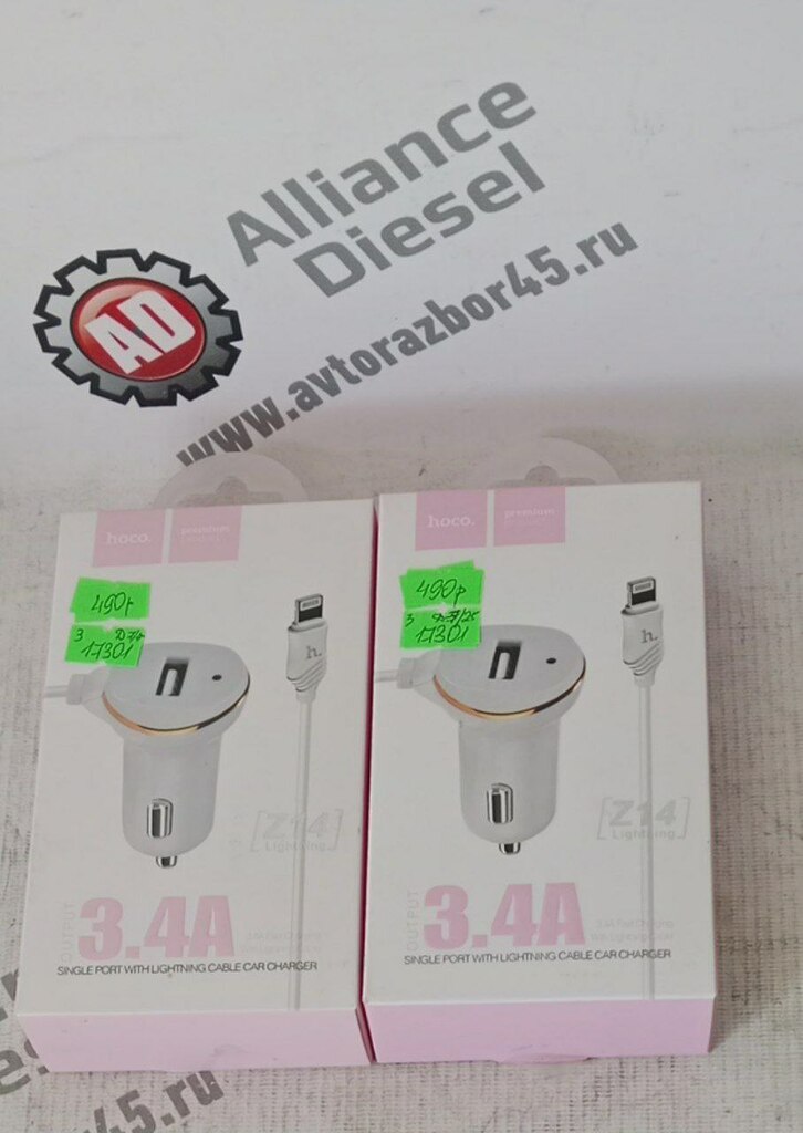 зарядное устройство автомобильное HOCO 1USB 3,4A /8-PIN Z14 нов. z14 для грузовые HOCO